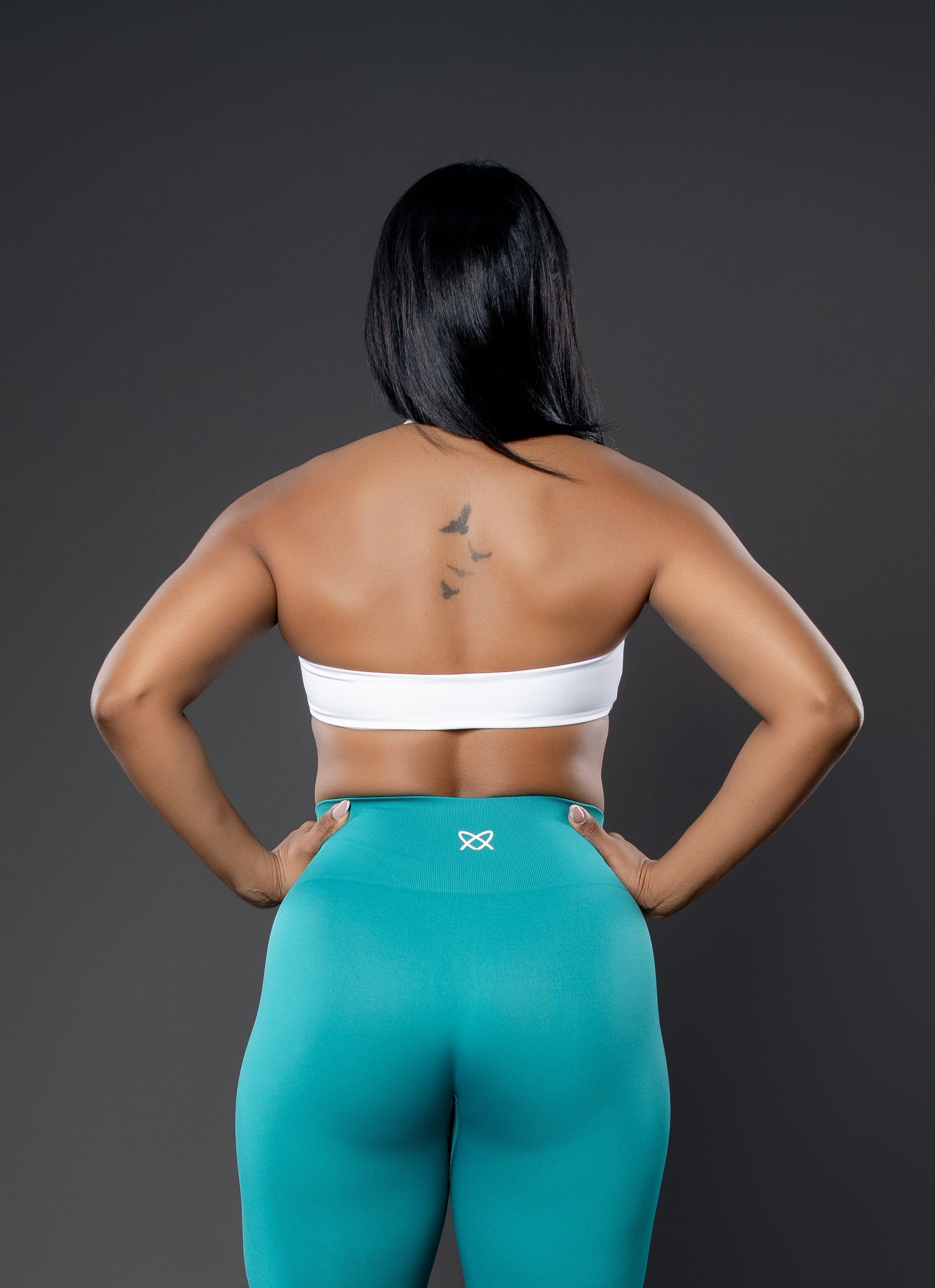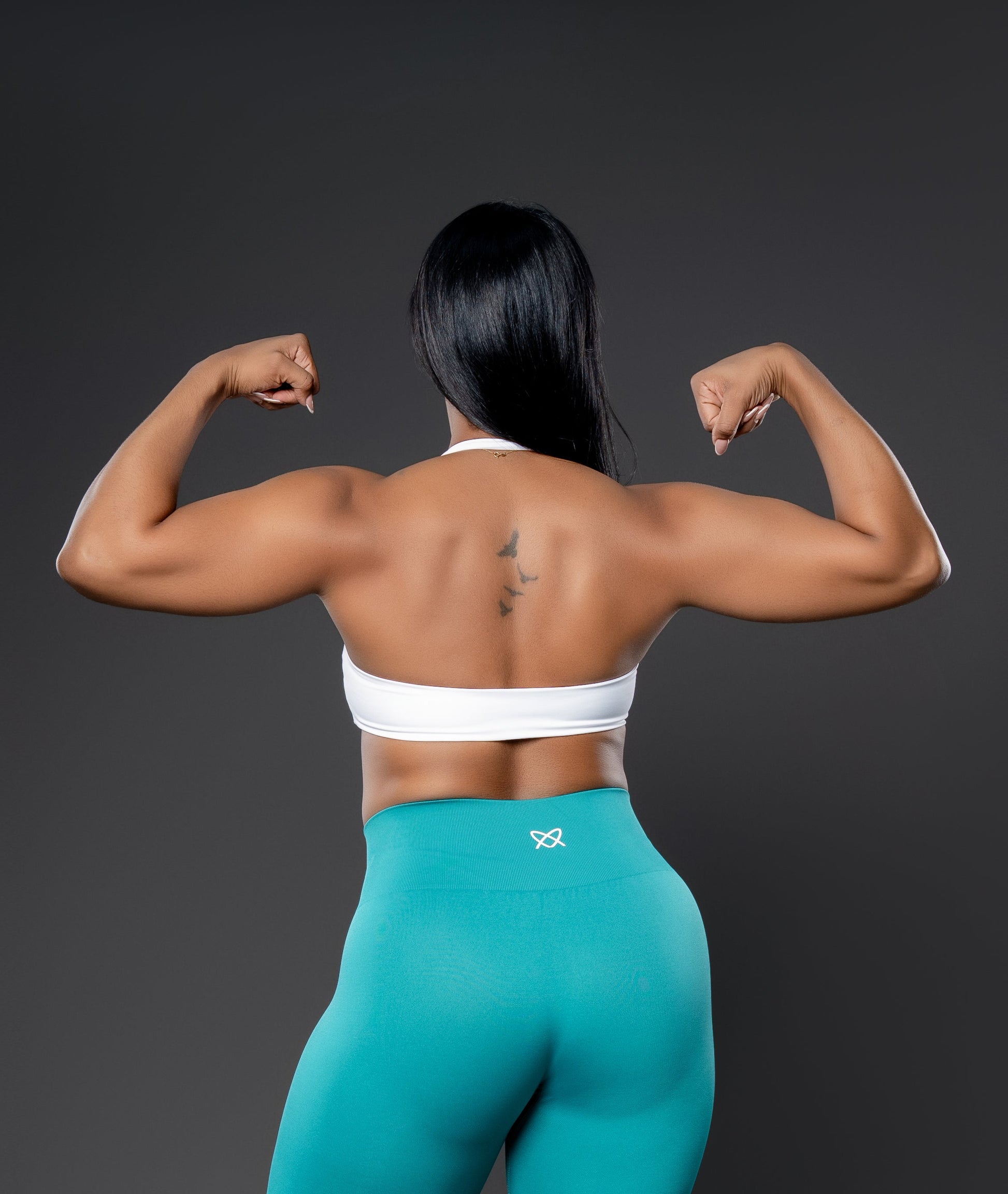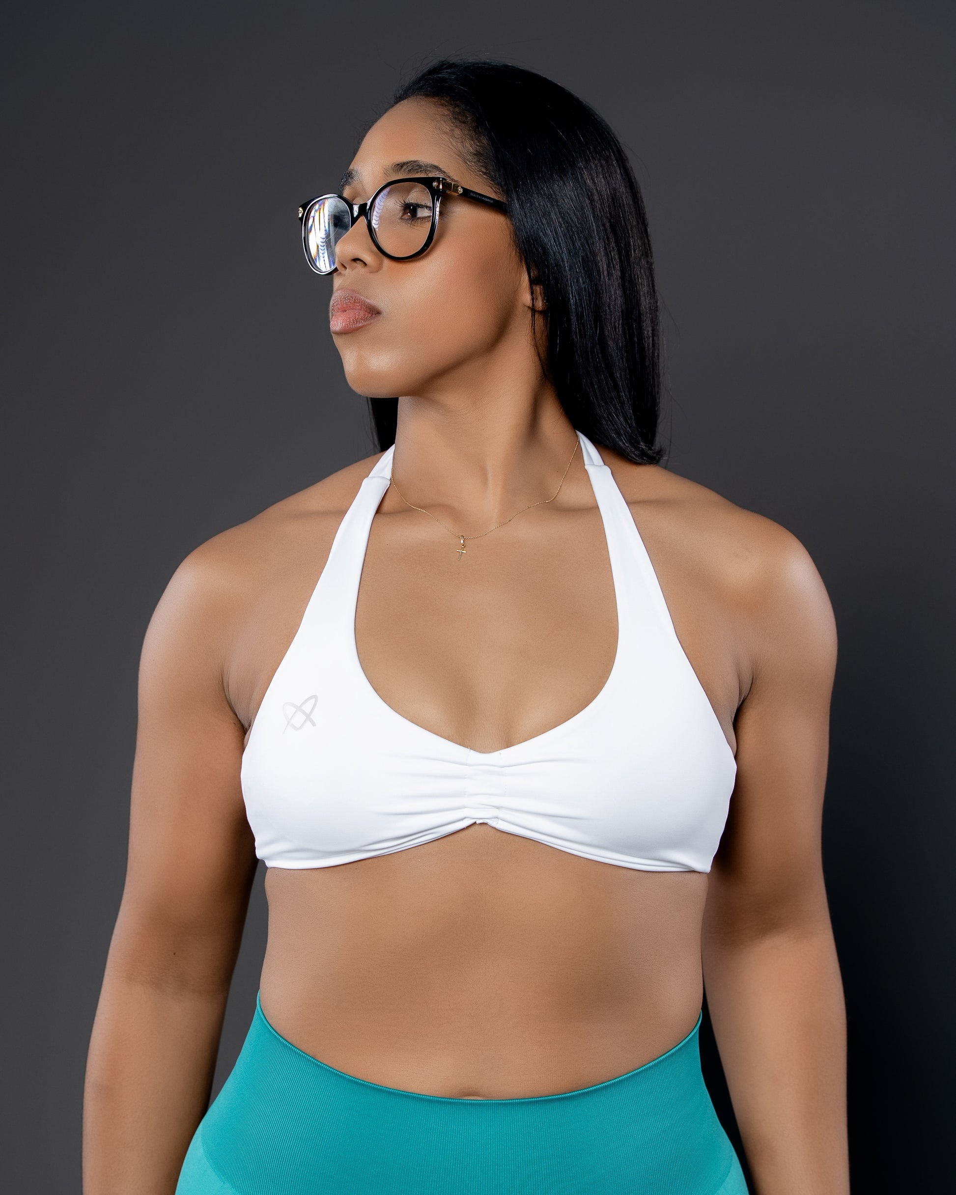 El Axia Top es una oda a la fuerza digna y silenciosa de la mujer. Su diseño con escote halter y fruncido central resalta la figura sin sacrificar soporte ni movilidad.